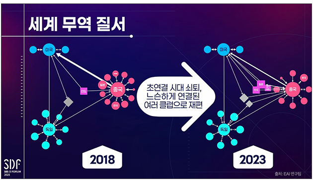 안녕하세요? 오늘은 SBS D포럼(SDF) 2025에서 SBS문화재단과 공동 연구를 진행한 연구팀 소식을 전합니다. SDF의 강점이자 특징 중에 하나가 국내외 싱크탱크들과의 공동연구인 것은 다들 아시죠? 공동연구에 참여했던 연사들은 포럼 이후에도, 학계에서 연구주제와 관련해 공개 세미나를 진행하면서 관련 연구에 대한 관심을 확산하기 위해 외부 전문가를 초청해 토론하며 논의의 장을 넓히고 있습니다. 지난 4일, 공동 연구팀이었던 동아시아연구원이 '세계 질서의 분절화와 새로운 경계 짓기'라는 주제로 외부 전문가 초청 공개회의를 열어 저희도 다녀왔습니다. 포럼을 못 보신 분들을 위해 포럼과 공개회의 내용을 종합해 소개해드리고자 합니다.