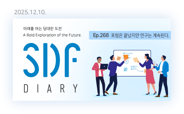 올 한 해 SDF다이어리와 SBS D포럼(SDF)으로 함께 해주신 모든 분들께 다시 한 번 감사드립니다. 저희는 재정비 시간을 갖고 새해에 새로운 모습으로 다시 찾아뵙겠습니다. 따뜻한 연말연시 되시길 바랍니다.
