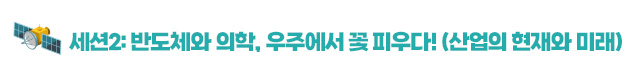 우주 산업의 현재와 미래를 전망하는 세션 2에서는 세계 반도체 시장을 선도하는 삼성전자와 SK하이닉스의 반도체 담당 임원들이 참여합니다. 우주 인프라 시대에 필요한 우주 반도체의 가능성과 과제를 점검하고, 우주 데이터센터로의 확장 가능성을 직접 설명할 예정입니다.